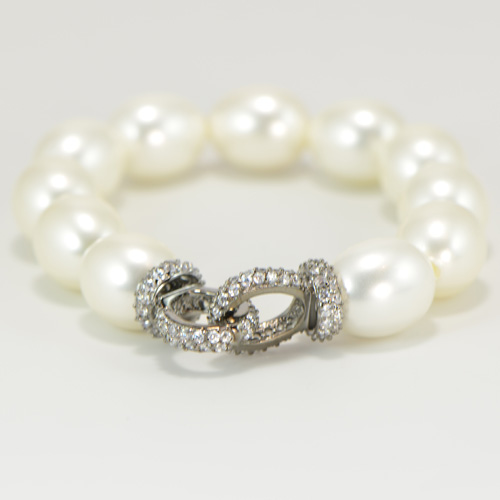 - Stretchy Oval Pearls With Oxidized Pave Link