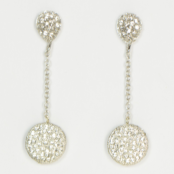 - Round Paved on all Sides Disc Hangs from a Teardrop Pave Post