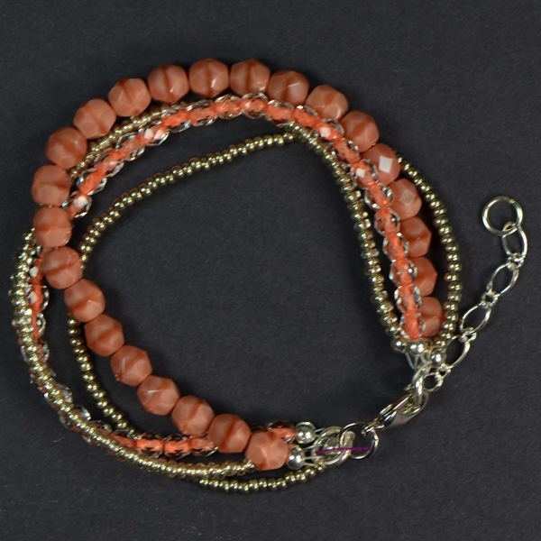 - 4 Strands of Mixed Beads in Shades of Coral & Silver