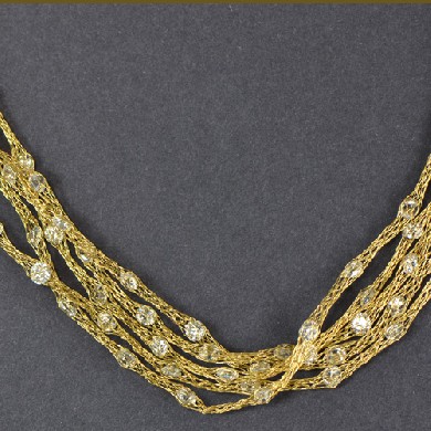 - 5 Strands of Fine Gold-Plated Sterling Silver Mesh with Czs.
