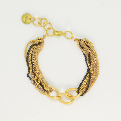- Multi-Strands of Matte Gold & Black Chains with Brass Elements