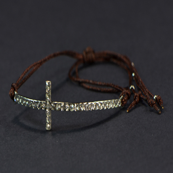 Elizabeth Jules Pave Cross on Brown String Bracelet