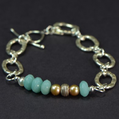 Etched Sterling Silver Oval & Amazonite Bracelet