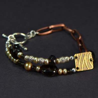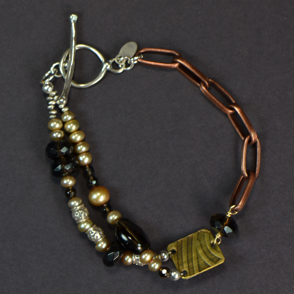 Brass Copper Smoky Quartz with Sterling Beads Bracelet
