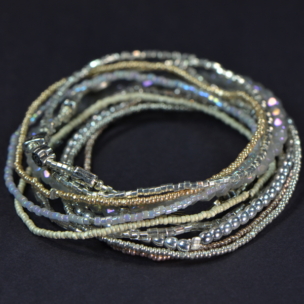 - 10 Strands of Tiny Pearlized Seed Beads with Metal Beads