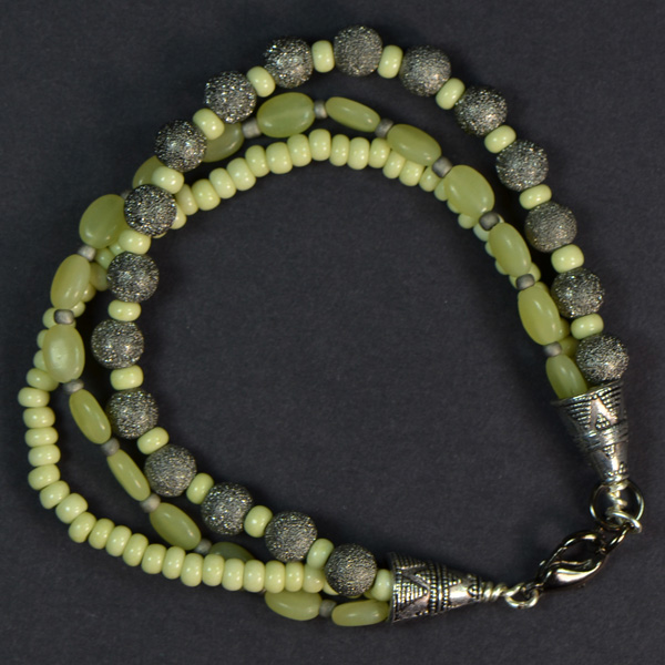 - 3 Strands of Jade, Gunmetal Stardust, & Seed Beads