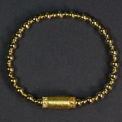- Gold-Coloured Shiny Beads with Matte Cylinder & Pave Crystals Rondells