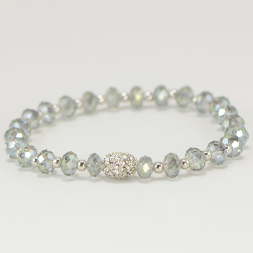 - Green Crystals with Small Silver-Plated Beads - Stretch Style
