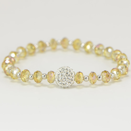 Swarovski Crystal Stretch Bracelet with Silver Pave Disc
