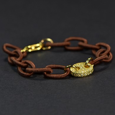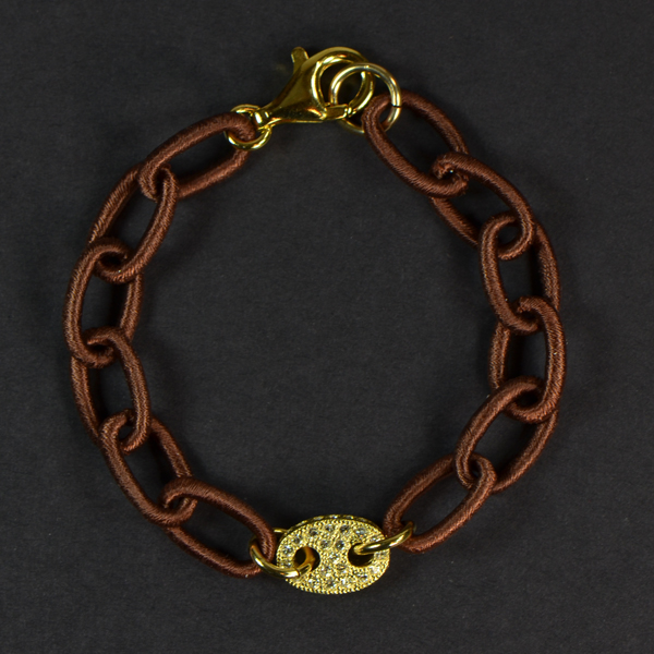 - Brown Silk Oval Links with 18K Gold-Plated Sterling Silver Pave Designer Link