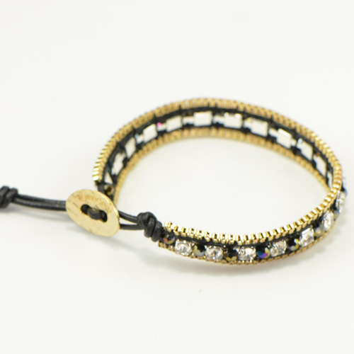 - Soft Black Leather with Crystals - Gold Button Closure