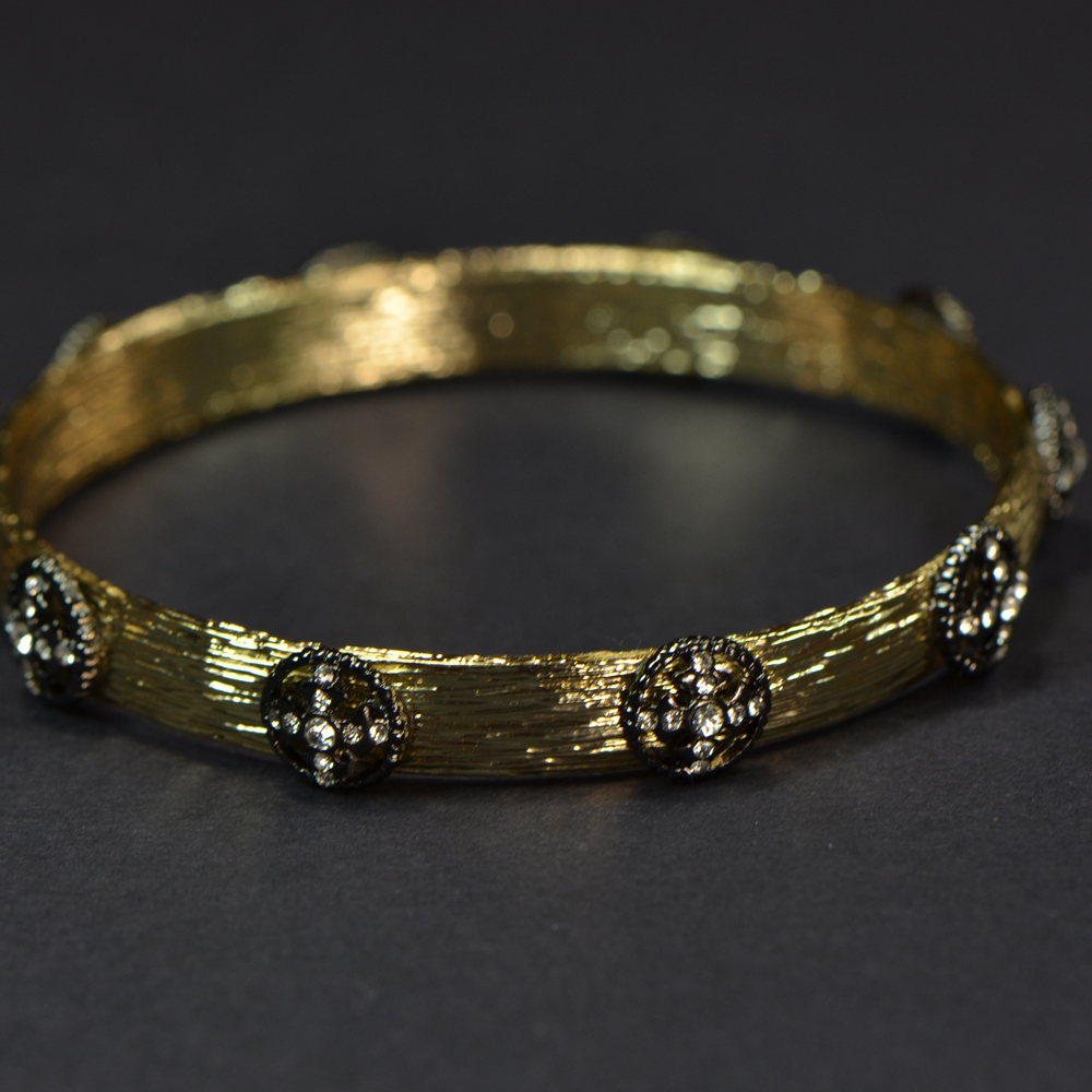- 10 Hematite & CZ Stations on a Gold- Plated Textured Bangle