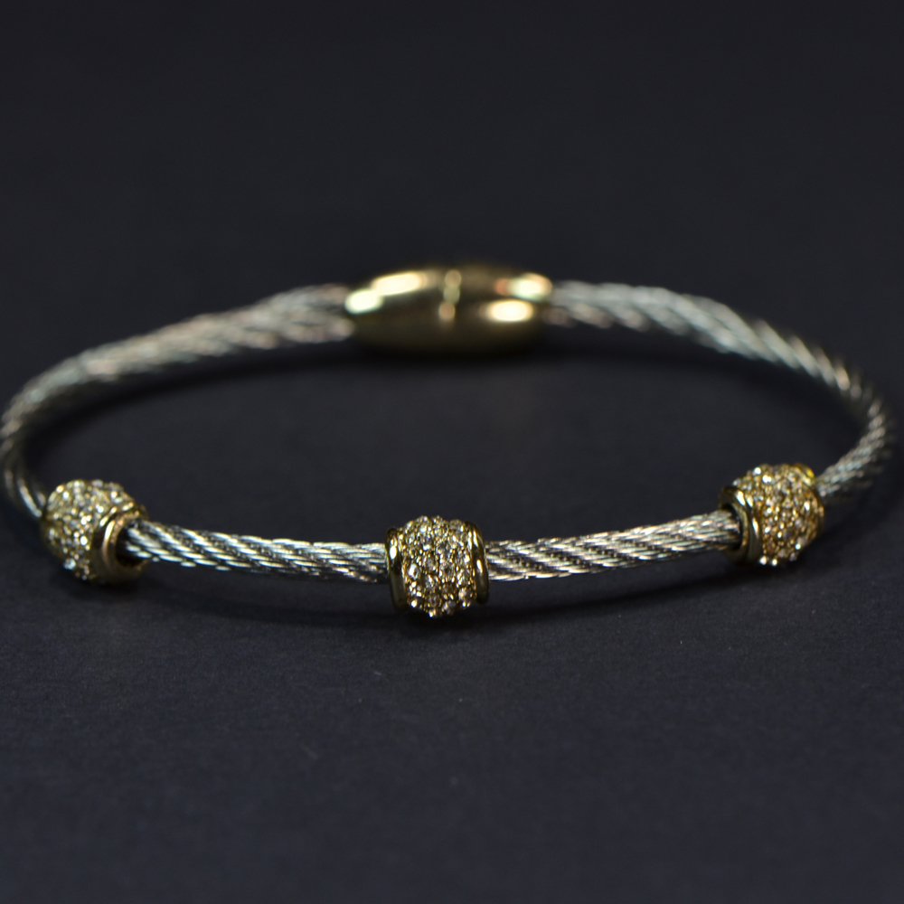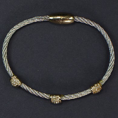 - Two-Tone 3 Barrels on Wire - Magnetic Clasp - Approx. 7 1/2" in Length