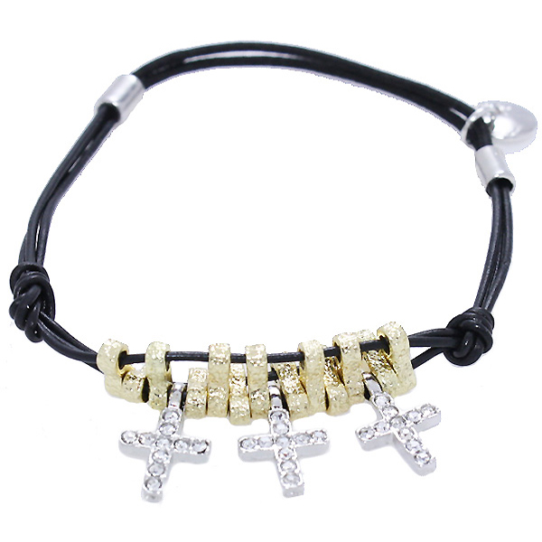 Cross Charms on Black Stretch Bracelet