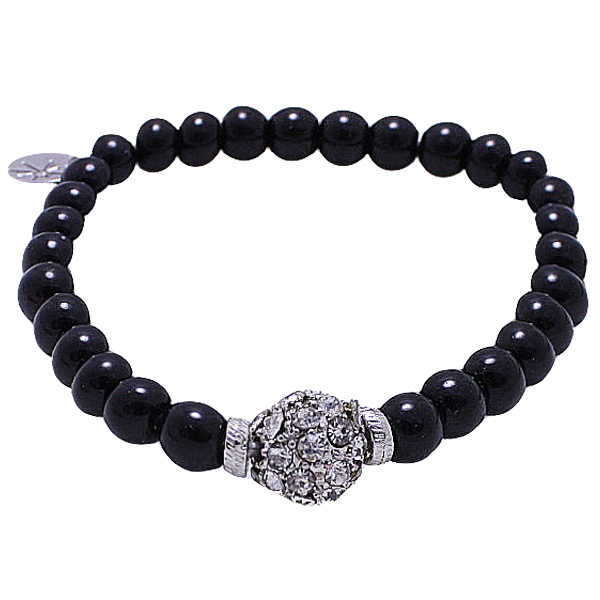 - 8mm Black Howlite Beads with Pave Ball - Stretch Style