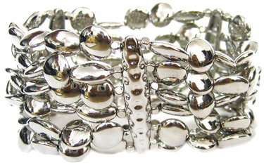 - Shiny Silver Coloured Cuff Consisting of Round & Oval Beads - 6 Strands