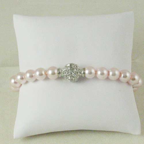 - White Pearl Bracelet with Magnetic Fireball Clasp