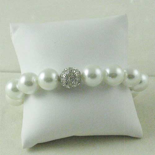 - Cream Coloured Glass Pearls with a Silver Pave Bead