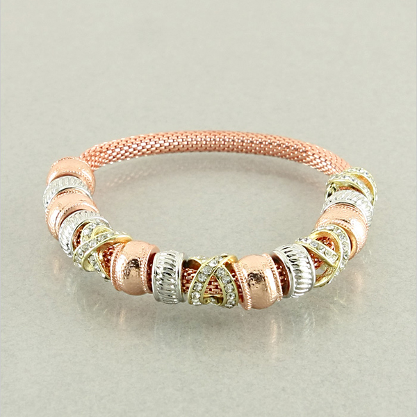 - Sliding X Shape Rondelles on Rose - Gold Mesh