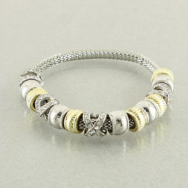 - Sliding X Shaped Rondelles on Siver Mesh Bracelet