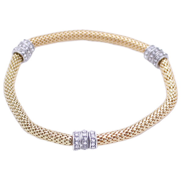 - 3 Stations of Rondelles on Gold Mesh Bracelet