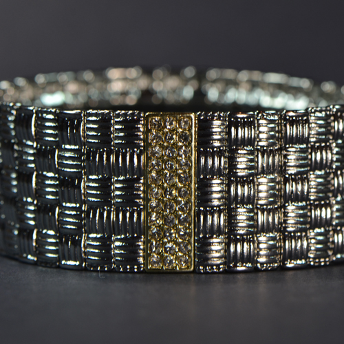 - Silver-Tone Brass Metal Cuff with Crystal Bar - Approx. 1" in Width