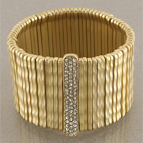 Gold-Toned Satin Stretch & Crystal Bar Cuff Bracelet