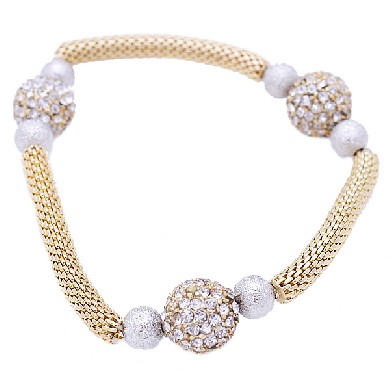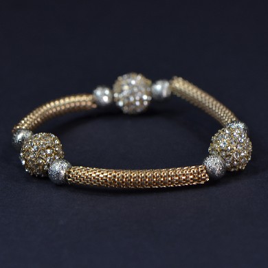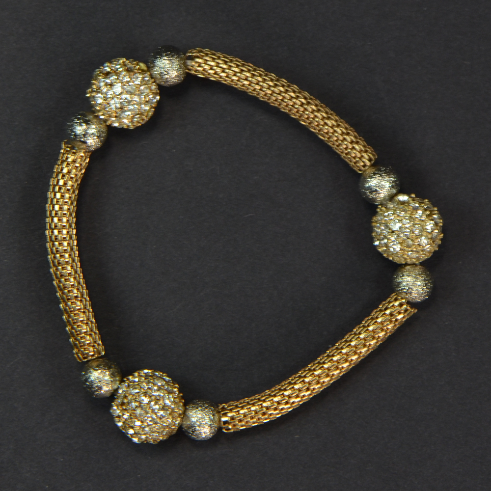 - Gold Mesh Chain with 3 Pave Ball & Silver Stardust Balls