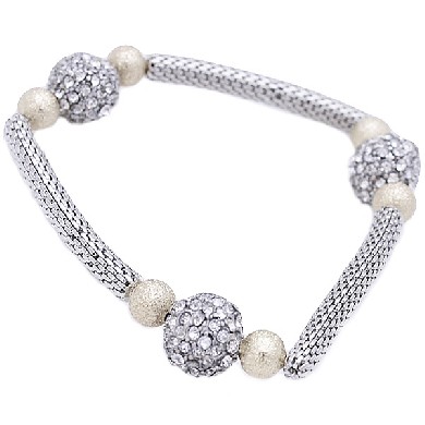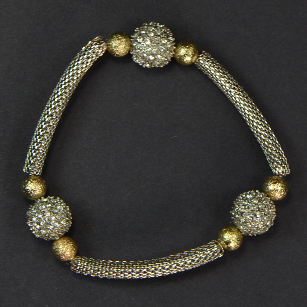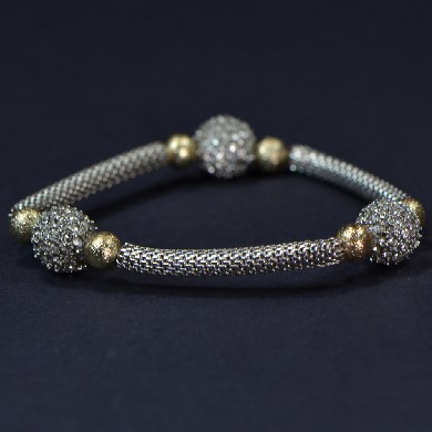 - Silver Mesh Chain with 3 Pave Balls & Gold Stardust Balls