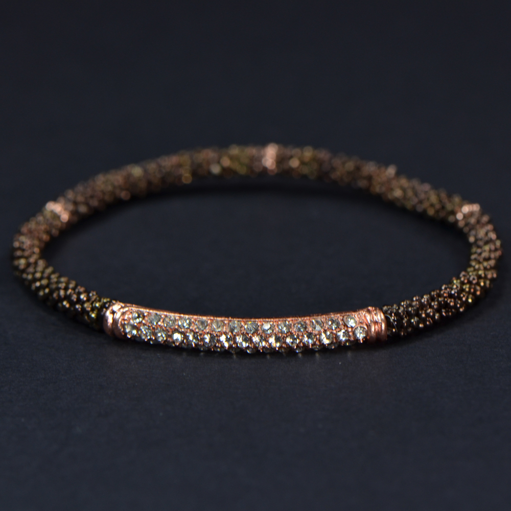 Brown Point Roundelles Stretch with Pave Bar Bracelet
