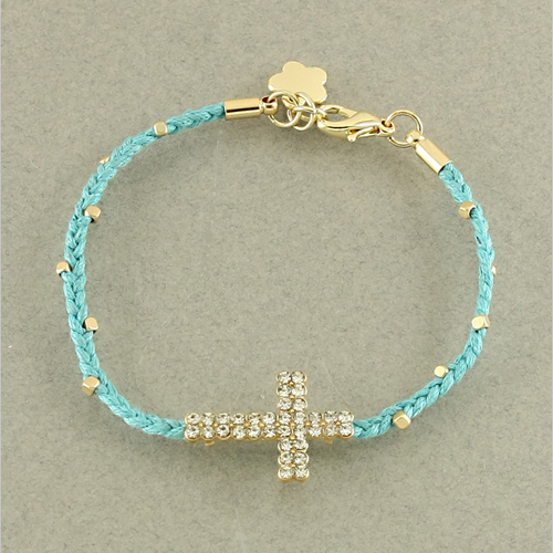 - Crystal Cross on a Turquoise String with Gold Accents