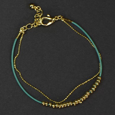- Small Gold Sliding Beads on Blue String with Chain