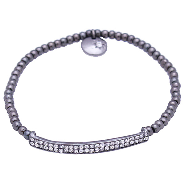 Gunmetal Beads & Pave Bar Stretch Bracelet