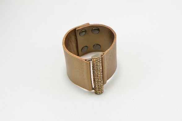 - Soft Copper Leather with 3" Bar of Topaz Swarovski Crystals
