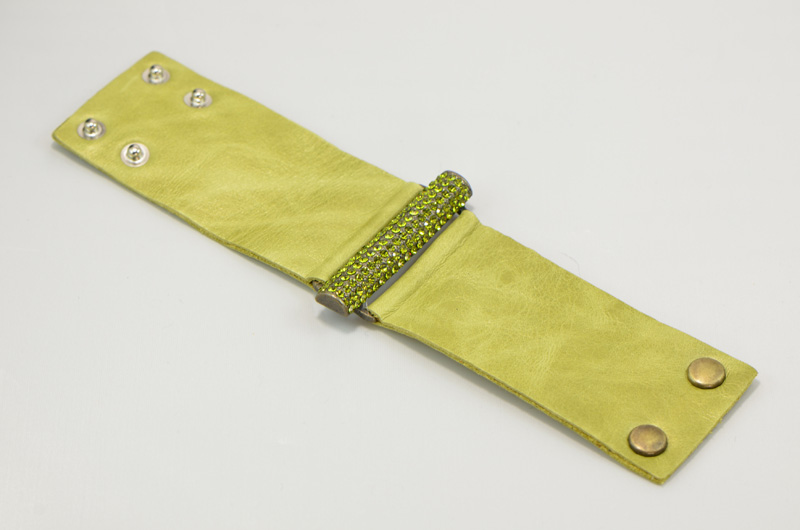 - Soft Green Leather with 3" Bar of Olivine Swarovski Crystals