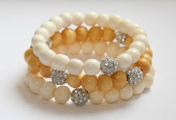 Set of 3 Bone 10mm Beads Stretch Bracelets - Black Diamond Fireballs