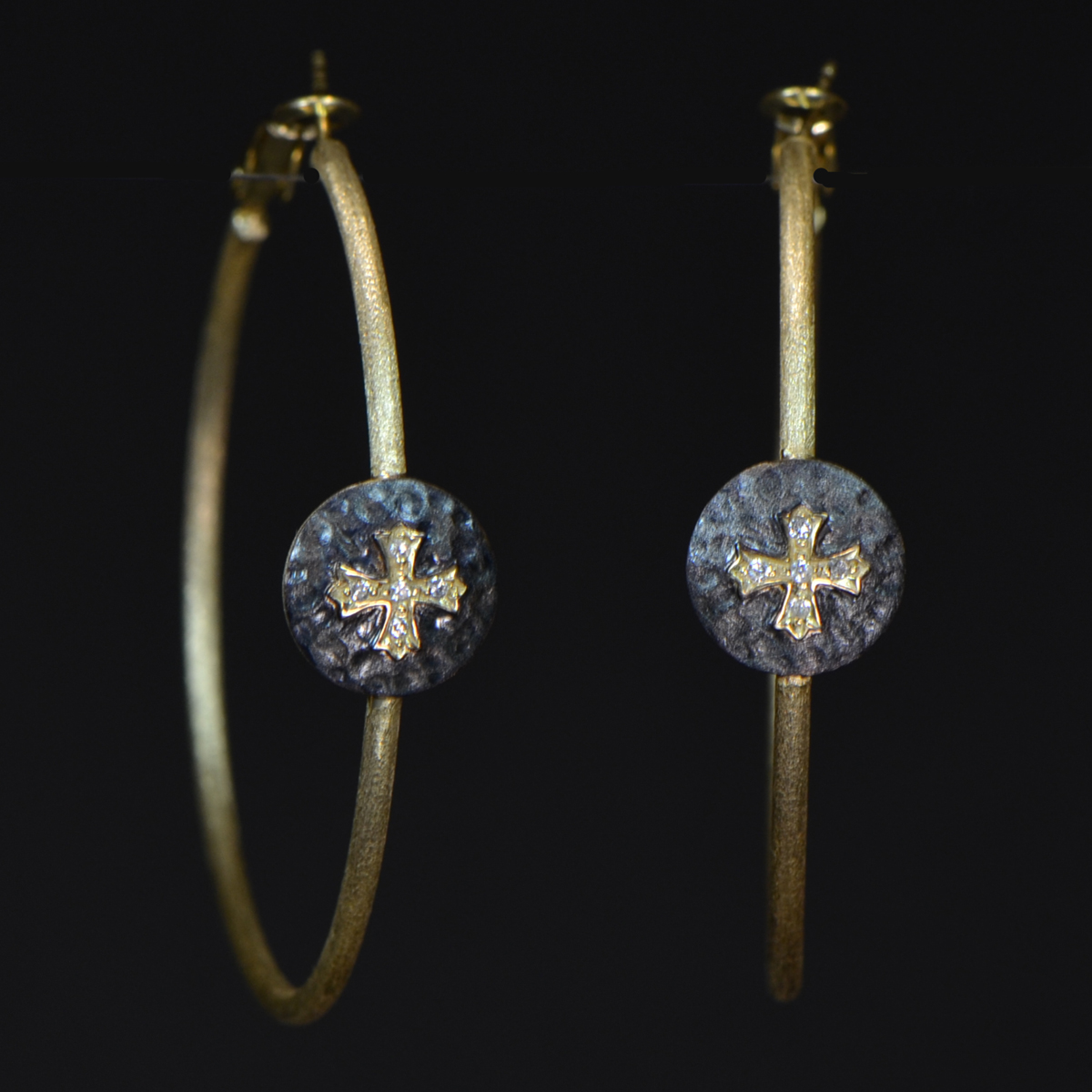 - Gold-Plated Matte Hoops with Rhodium-Plated Station