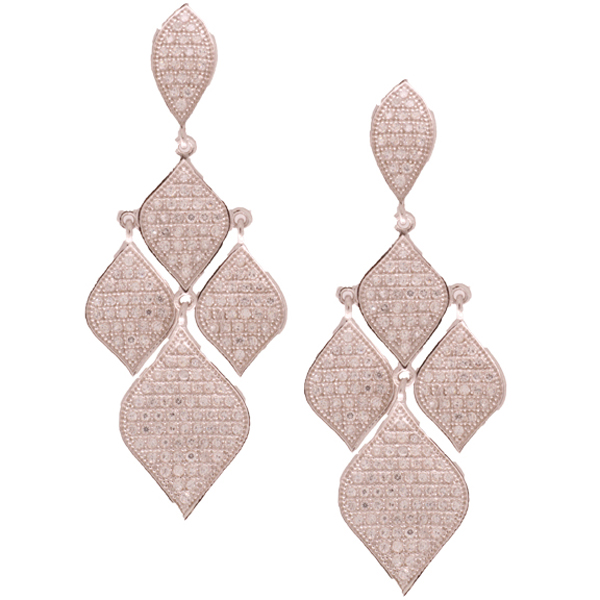 - Sterling Silver with Rose Gold Overlay Diamond Shaped Micro Pave Cz Dangling Earrings