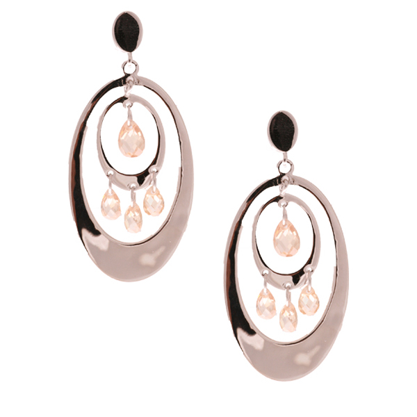 - Dangling Brass with Rhodium Overlay Ovals with Light Champagne Crystals