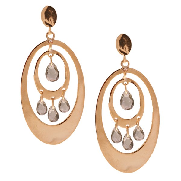 - Dangling Brass Yellow Gold Overlay Ovals with Smoky Grey Crystals