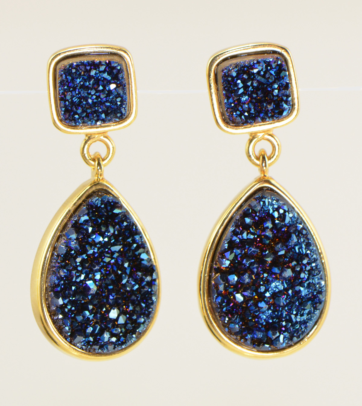 Marcia Moran Dark Blue Druzy Double Drop 18K Gold-Plated Earrings
