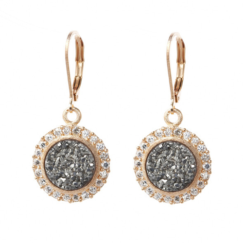 - Small Round-Shaped Titanium Druzy Drop Earrings Surrounded by CZs