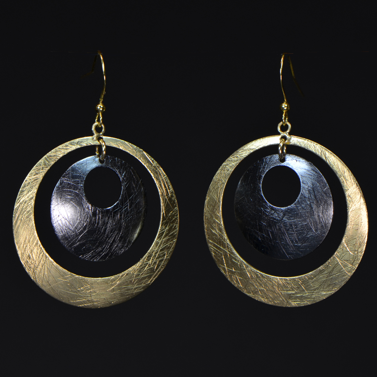 - Gunmetal & Gold-Plated Circle Dangle Earrings