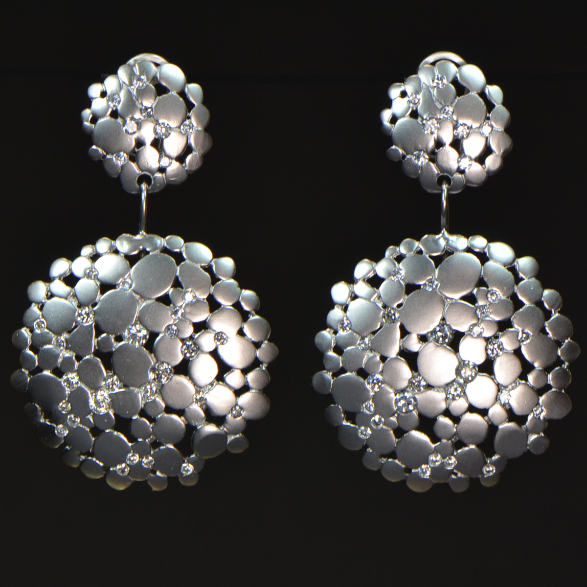 - Silver-Plated Brass Double Circle Earrings wit Scattered CZs