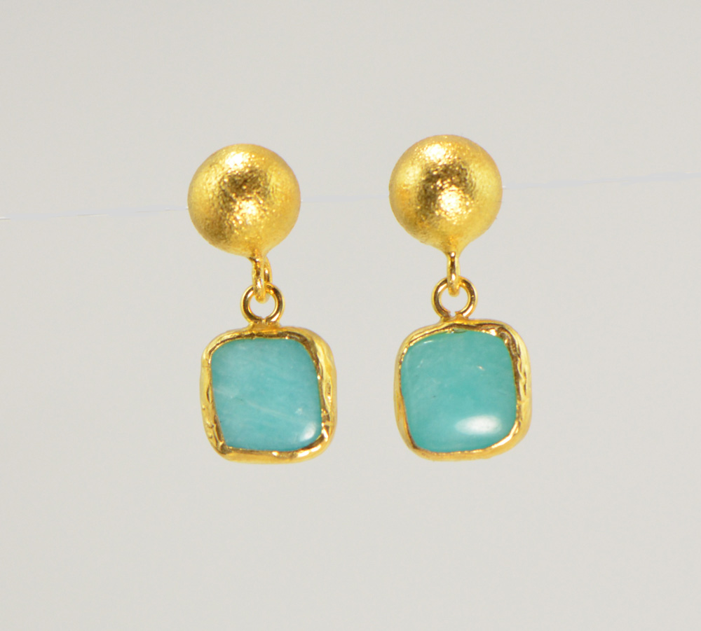 - Square Turquoise in Sterling Silver 24K Gold Plated Earrings