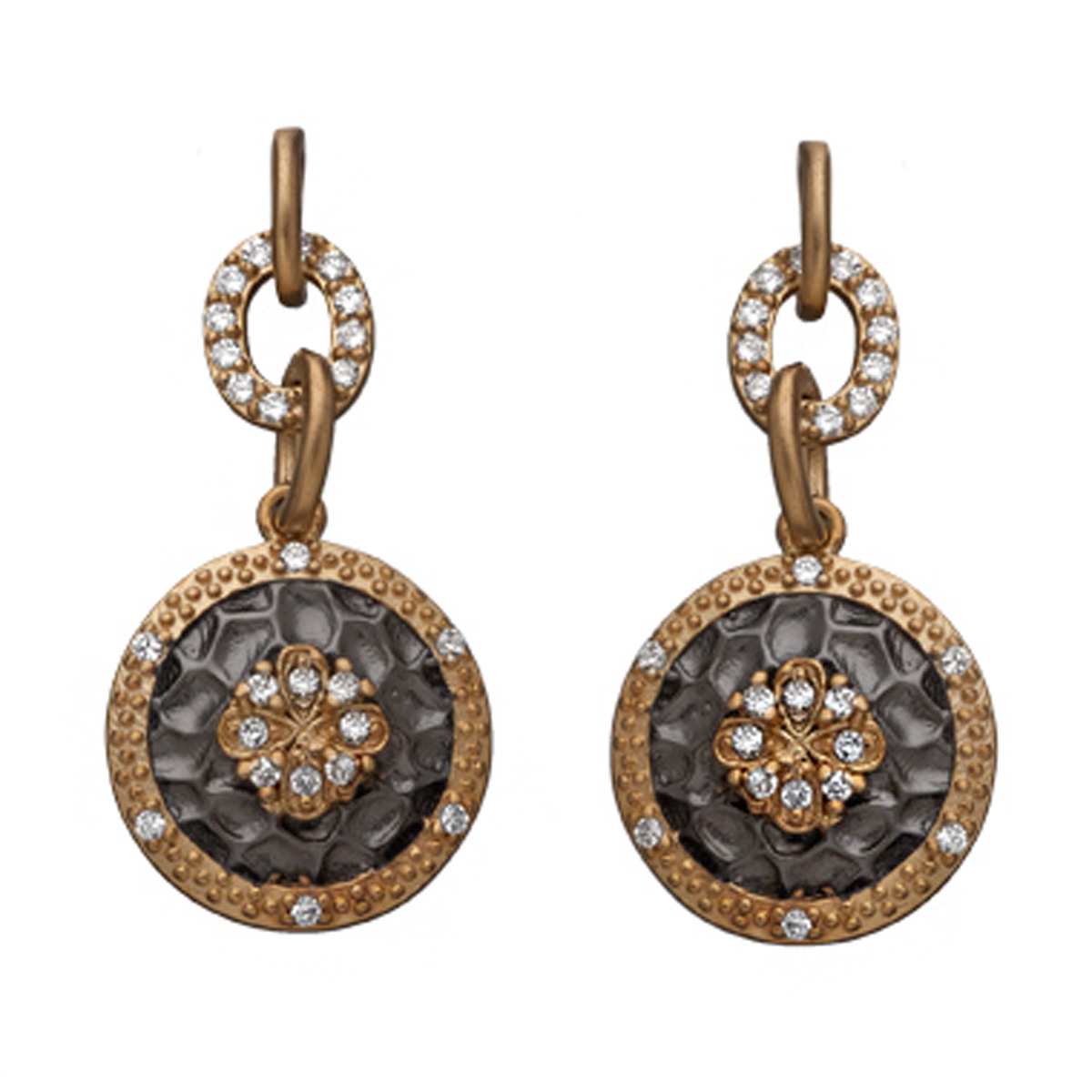 - Hammered Circles with CZ Accents in 14K Vermeil & Black Rhodium