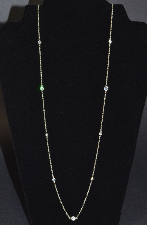 - Rhodium Plated Necklace with 12 - 4mm & 5mm CZ - 36" in Length