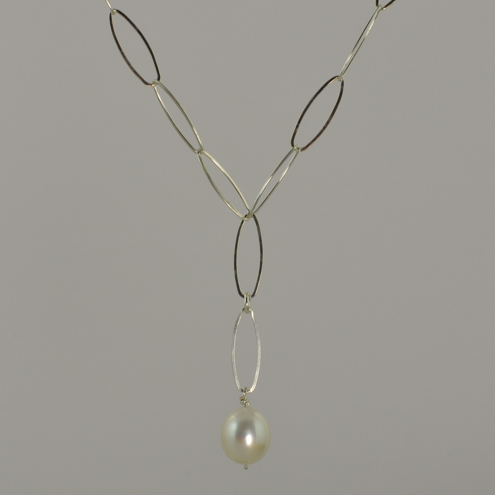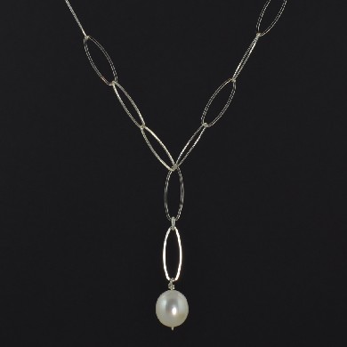 - White Fresh Water Pearl on 18" Sterling Silver Rolo Chain