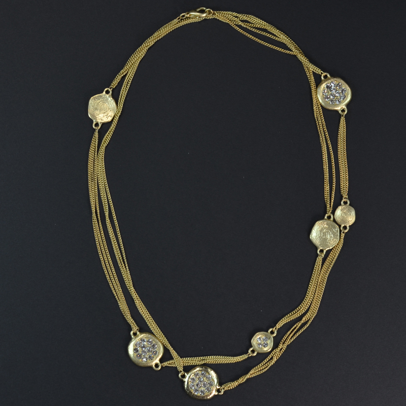 - 3 Brass Base Metal Gold Chains with Pave Stations
