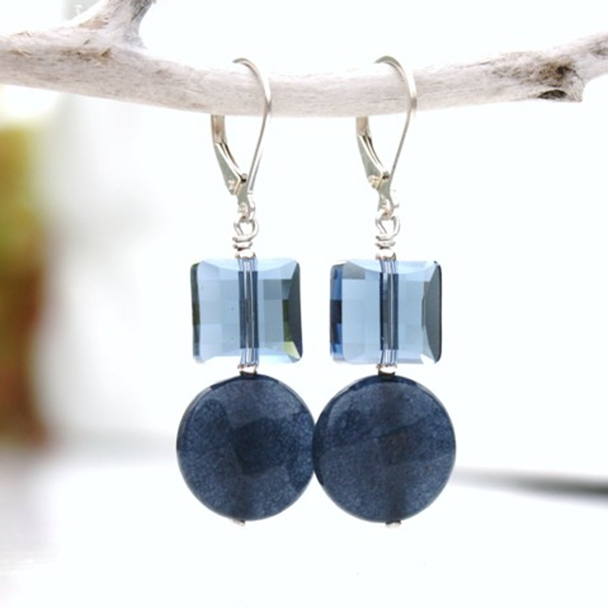 - 10mm Swarovski Denim Blue Stairway Crystals, 12mm Blue Jade Coins
